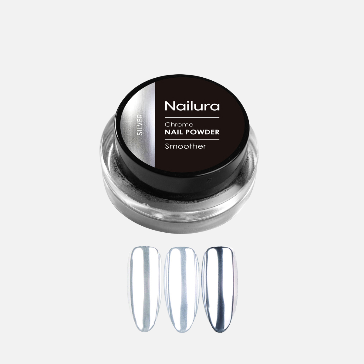 Chrome Powder er et fint pigmentpulver, der giver neglene et smukt, metallisk spejleffekt på neglene. Det påføres oven på en hærdet, let klæbrig geléoverflade, gnides ind med en Silicone Rod, og afsluttes med Top Coat for at forsegle effekten og sikre lang holdbarhed.